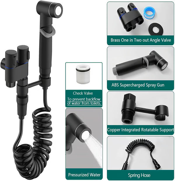 Handheld Bidet Sprayer: The double control valve is made of high-quality 304 stainless steel and brass and the bidet sprayer is crafted from high-quality plastic, ensuring rust resistance, durability, and safety. This guarantees a longer product lifespan while providing you with peace of mind during use.